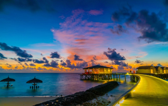 Witness the tranquility, the gorgeous colours in the sky and the ethereal beauty of a Maldivian sunset surrounded by vast sea and sky.